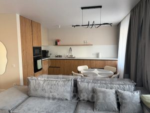 Дизайнерская квартира с новым ремонтом встречает свой первый сезон. Большая квартира с двумя уютными спальнями, большой кухней - гостиной. В квартире два балкона (один из них лоджия 6 м) балконы утеплены, обшиты, на а балконах теплый пол. Теплый пол по всей квартире. В квартире есть вся техника, чтобы чувствовать себя как дома. Диван раскладывается. Есть вай фай. Бесконтактное заселение. Дом находится рядом с остановкой и большим супермаркетом *Реми*.