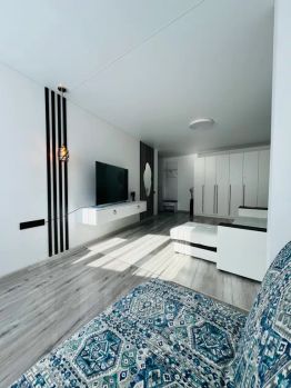 Квартира в новом современном доме, оборудованном несколькими лифтами, большая парковка, видеонаблюдение. Для наших гостей в квартире есть всё необходимое для комфортного отдыха: новая мебель, бытовая техника, спальные принадлежности (постельное, полотенца), фен, средства личной гигиены, таблетки к посудомоечной машине, средства для стиральной машины. К вашему комфортному проживанию от нас кофе, чай, конфетки.