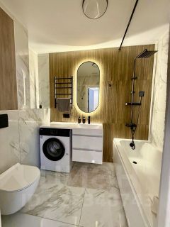 *Полная техника для жизни: на кухне установлена посудомоечная машина (освободит ваше время), духовка, варочная панель, встроенный холодильник. Большой телевизор в гостиной. Стиральная машина в ванной.