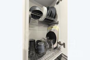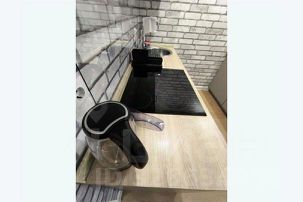 Полностью оборудованная кухня (посуда для приготовления и приёма пищи, холодильник, плита, вытяжка, микроволновка, электрочайник, столовые приборы).