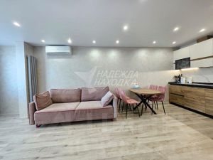 Железная дверь, Натяжной потолок, Софиты, Тёплый пол, Пластиковые окна, Межкомнатные двери, Ламинат, Стены выровнены.