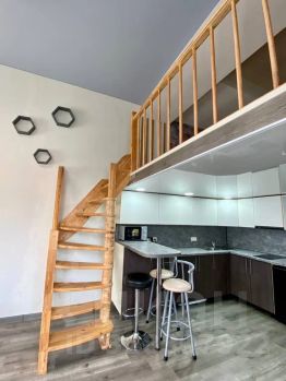 Уютная студия с великолепным видом на бухту Золотой Рог и мост. Двухуровневая квартира, высота потолка второго яруса составяляет 140 см.
