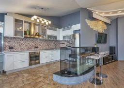 Апартаменты оборудованы техникой, мебелью, посудой, постельными принадлежностями.