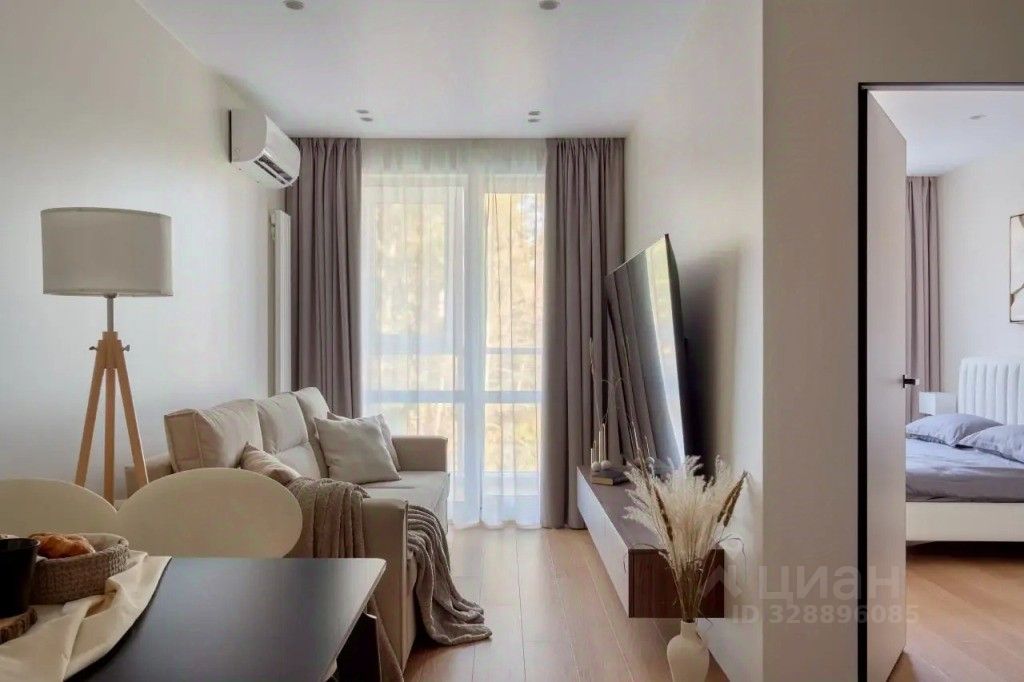 В квартире есть оборудованная кухня, кофемашина, диван, спальня с двуспальной кроватью.