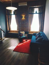 Двухэтажный номер в стиле лофт. В номере 2 односпальные кровати, трансформирующиеся в 1 двуспальную, так же в номере представлен раскладной диван, установлен рабочий стол. Для удобства гостей в номере имеется собственная ванная комната со всеми необходимыми гигиеническими принадлежностями,предоставляются халаты и постельное белье.