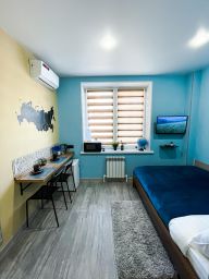 В номере 1 двуспальная кровать, телевизор, ванная комната, вид во двор.