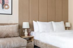 В номере: двуспальная кровать / две отдельные кровати, кресло-кровать (может использоваться в качестве дополнительного спального места), прикроватные тумбочки, шкаф, телевизор, рабочий стол, холодильник, сейф, кондиционер, балкон, капсульная кофемашина, чайник, чайные принадлежности, душ, теплый пол в ванной, косметические принадлежности, вафельный халат, фен.