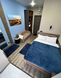 Мини-отель "Паллада" находится в элитном ЖК "Два Адмирала" в благоустроенном и экологически чистом районе города Владивосток — остановка "Маяк", р-н Эгершельд. Здесь в шаговой доступности ухоженная придомовая территория, современный стадион с площадками для активных игр и фитнеса, а так же панорамные виды на Амурский залив. К услугам гостей 9 номеров различной категории. В распоряжении гостей собственная ванная комната с душем, кондиционер, телевизор с плоским экраном и микроволновая печь. В числе удобств холодильник и чайник. На территории отеля имеется магазин и прачечная. Недалеко расположен корабельный причал FESCO, морской сквер Анны Щетининой, круглосуточный супермаркет, фруктовая лавка, аптека. До знаменитого маяка Токаревского с чистейшим в городе пляжем всего 1,5 км. До вокзала и центральной площади 3 км. Семейный номер с 1 двуспальной и 1 односпальной кроватью с балконом с видом на море. В номере телевизор, холодильник, ванная комната.