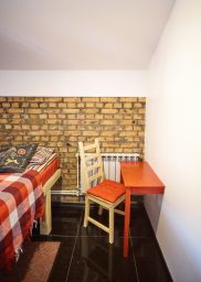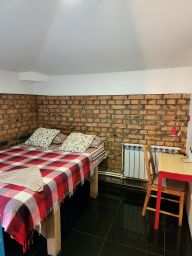На нижнем этаже располагается кухня общего пользования (холодильник, чайник, чай, м/в печь, посуда для употребления пищи, стиральная машина и порошок, (печка отсутствует).