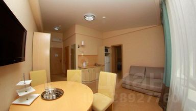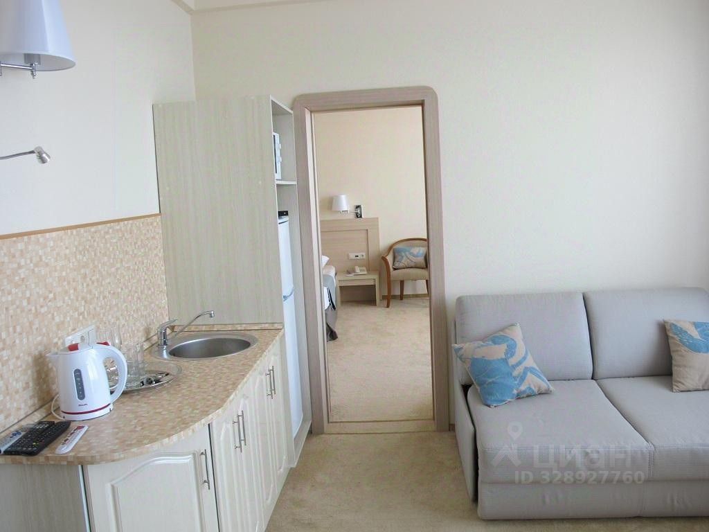 В спальной комнате: двуспальная кровать, в гостиной комнате: мини-кухня, диван.