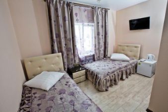 В номере: две односпальные кровати, холодильник, ж/к телевизор, душевая кабина, санузел, шкаф, стол письменный, чайник, Wi-Fi