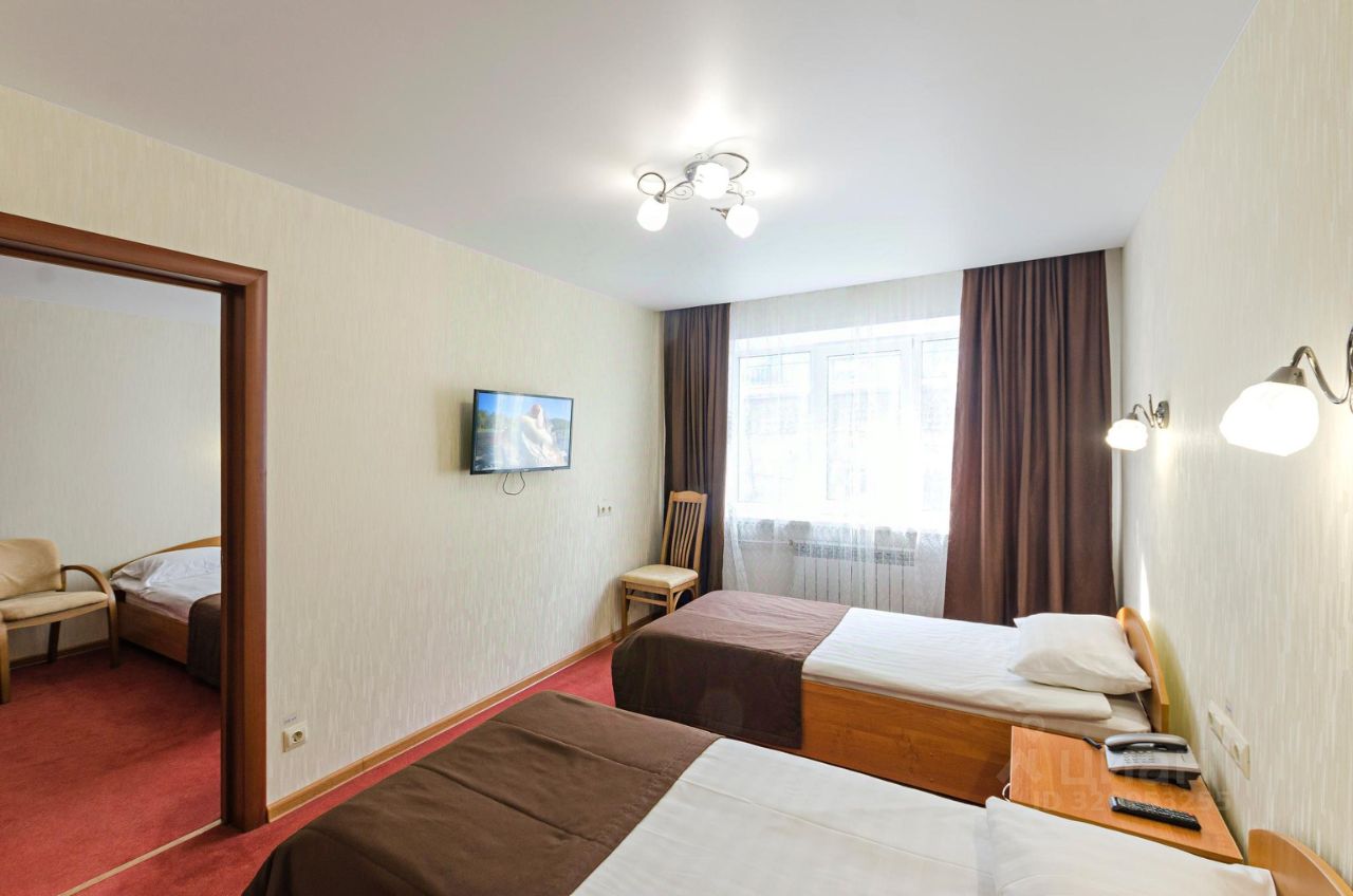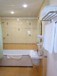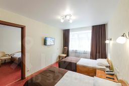 Двухкомнатный уютный номер. Номер состоит из гостиной и спальни. В одной комнате располагаются 2 односпальные кровати, телефон, телевизор, письменный стол, набор посуды и столовые приборы, термочайник, холодильник, кондиционер. В другой комнате - двуспальная кровать, прикроватные тумбочки. В санузле есть полотенца, туалетные принадлежности. фен. В прихожей находится шкаф-купе, тапочки. В номере есть застекленный балкон.