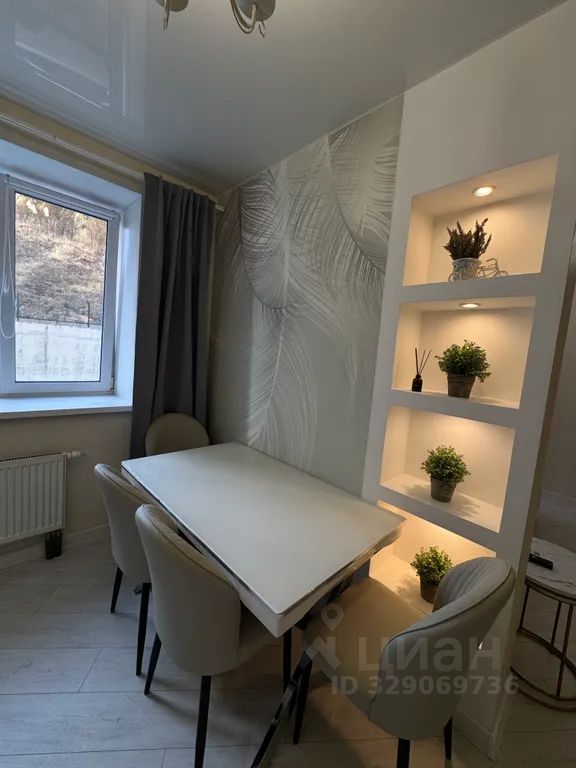 Внутри вас встретит светлое и просторное помещение, оформленное в современном стиле. Здесь есть все необходимое для комфортной жизни: от посуды и столовых приборов до кухонных принадлежностей для приготовления ваших любимых блюд. Вы сможете наслаждаться домашними ужинами, не выходя из квартиры.