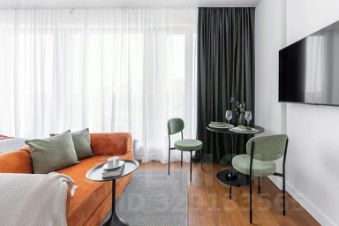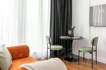 Однокомнатные апартаменты с балконом и панорамным видом на город вмещают до 4 гостей. В квартире имеется диван, который раскладывается в двуспальное место. Пол в апартаментах из натурального дерева.