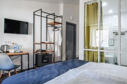 В номере: большая двуспальная кровать или две односпальные кровати , телевизор с плоским экраном, шкаф или гардероб, холодильник, электрический чайник, обеденный стол, кондиционер, гладильные принадлежности, рабочий стол, вешалка для одежды.