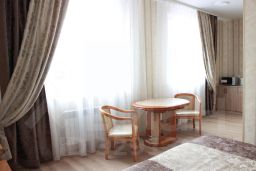Ванная комната: душевая кабина, раковина, санузел, зеркало, фен, водонагреватель, теплый пол, индивидуальные наборы гостиничной парфюмерии, комплекты полотенец, махровые халаты, тапочки.