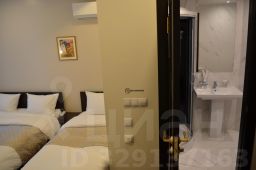 Стандарт трехместный с двуспальной и односпальной кроватью. В номере есть тв, собственный сан.узел, душевая кабина, тапочки, халаты, вода.