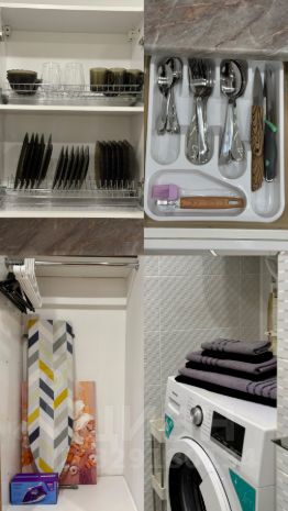- Стиральная машина, кондиционер, микроволновая печь, утюг, гладильная доска, сушилка, теплый пол, фен