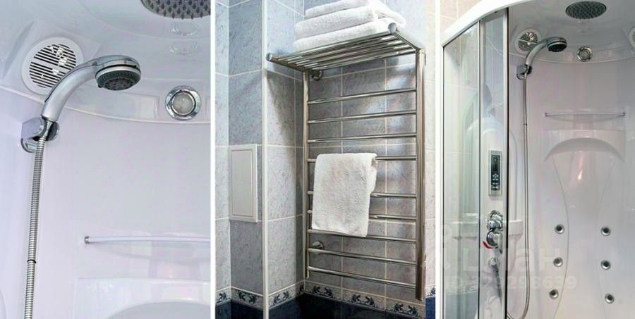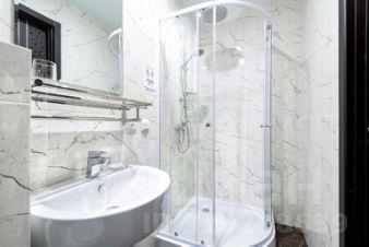 В ванной комнате установлена современная душевая кабина, есть набор полотенец, тапочки и туалетные принадлежности.