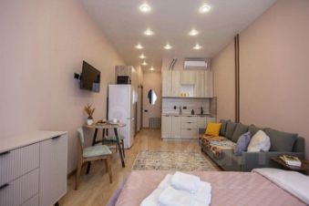 Номер уютно обставлен и оснащён необходимым, чтобы отдохнуть после долгого и насыщенного дня. Имеются телевизор. Оснащение зависит от выбранной категории номера.