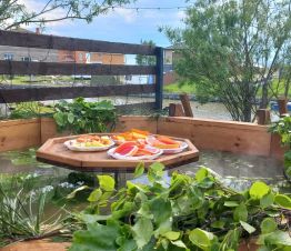 Есть мангальная зона, стол-гриль, банный чан, банька на дровах