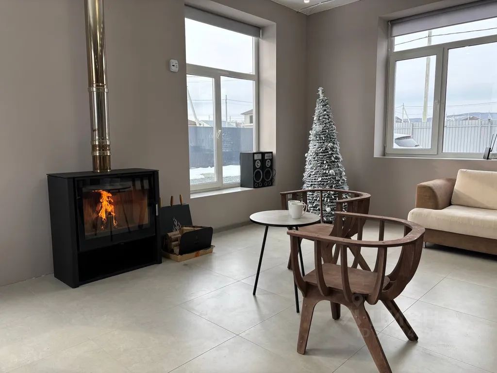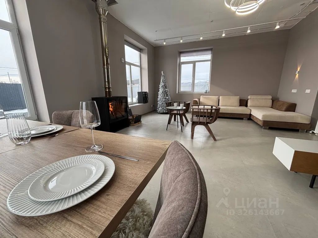 Просторная кухня-гостиная с диваном и большим камином, для тёплых и уютных вечеров в кругу своих близких.