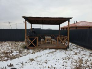 Просторная территория с зоной отдыха у костра, чашей и мангалом.
