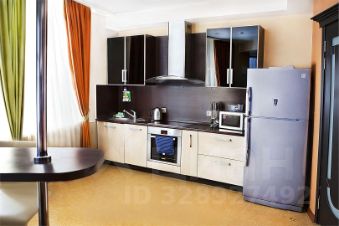Оборудование кухни на первом этаже: большой обеденный стол, барная стойка, телевизор, холодильник, электроплита, вытяжной шкаф, посудные шкафы, мойка, посудомоечная машина, микроволновая печь, чайник, базовый набор посуды на 8 персон, кастрюля, сковорода.