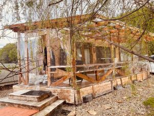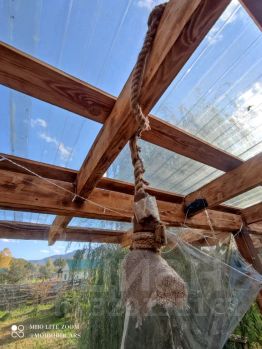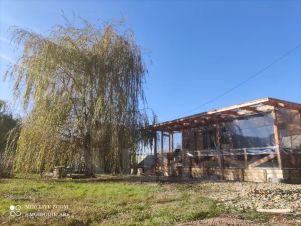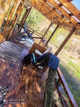 Крытая веранда пристроена к дому (прозрачная крыша с откидными мягкими окнами) с освещением, стол, стулья