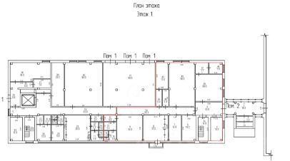 ПАО "Ростелеком" предлагает к продаже недвижимое имущество нежилые помещения в здании по адресу: Приморский край, Пожарский р-н, пгт Лучегорск, мкр 4-й, зд. 1а. Помещения выделены красным контуром на плане.