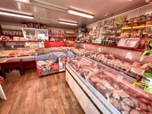 Магазин продается со всем торговым оборудованием: 4 кондиционера, профессиональное оборудование для разделки мяса (пила, мясорубка, инвентарь), 23 холодильника, торговые стеллажи, видеонаблюдение (6 камер).