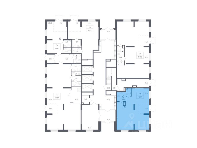 Продажа помещения свободного назначения 72,72 кв.м на 1-м этаже ЖК "Квартал Нейбута" в строящемся корпусе 1.2. Срок сдачи: IV Квартал 2026 года.