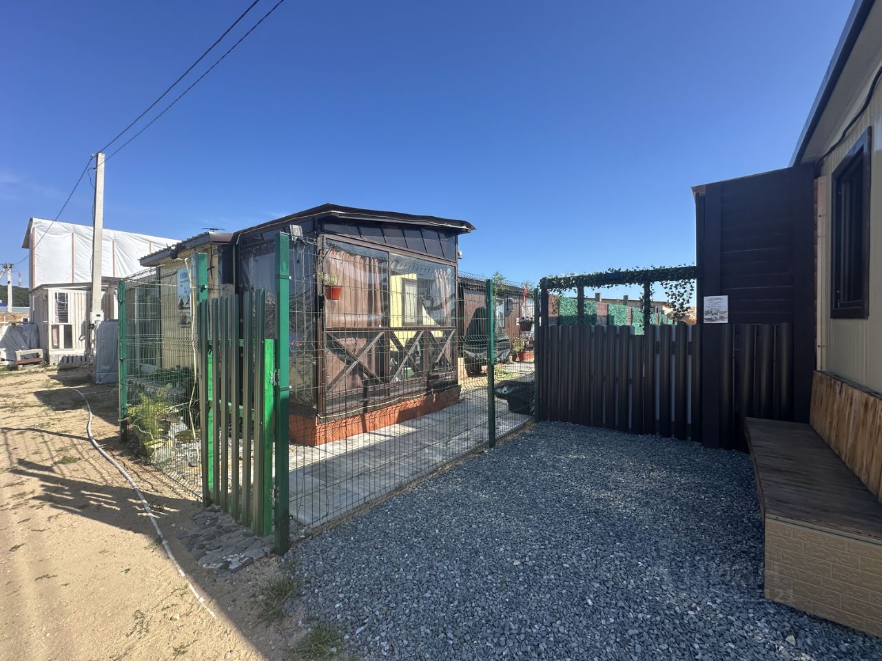 На территории размещается до 2ух семей в 2ух домиках КРУГЛОГОДИЧНОГО ПРОЖИВАНИЯ для тихого и спокойного отдыха.Есть возможность переоборудовать крытую беседку в третий дом(под ванную комнату стоит готовый фундамент скрытый под батутом).Территория огорожена.Имеется своя бесплатная парковка и свой выход на море.