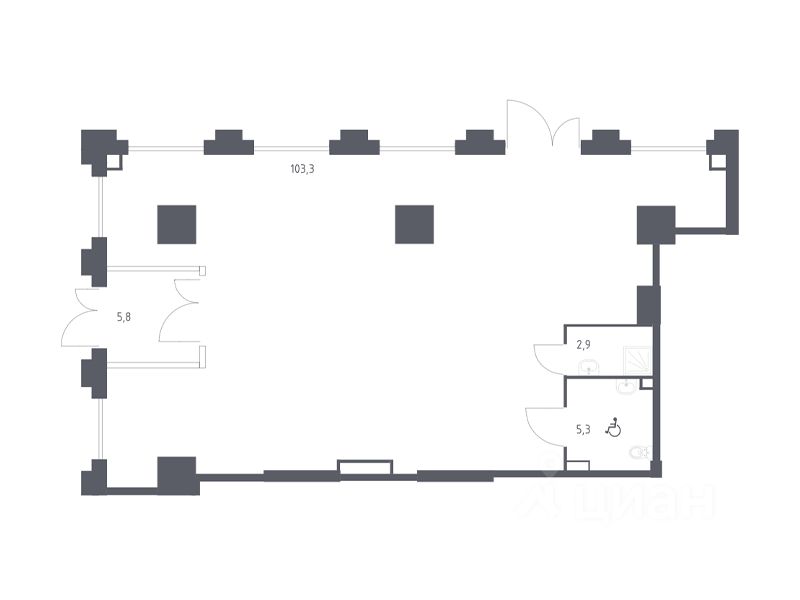 - Помещение свободного назначения с отдельным входом и витражным остеклением;