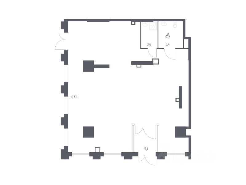 - Помещение свободного назначения с отдельным входом и витражным остеклением;