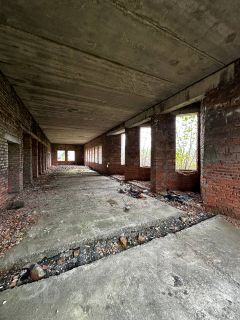 Основное здание 527,1 м2: Красный кирпич, надежный фундамент. Под ключевую инфраструктуру вашего хаба (офисы, столовая, диспетчерская).