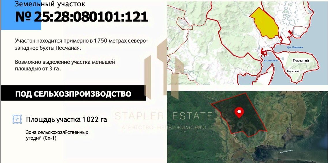 Продаём участок 1022 Га в бухте Песчаная с удобными подъездами под сельскохозяйственные нужды.