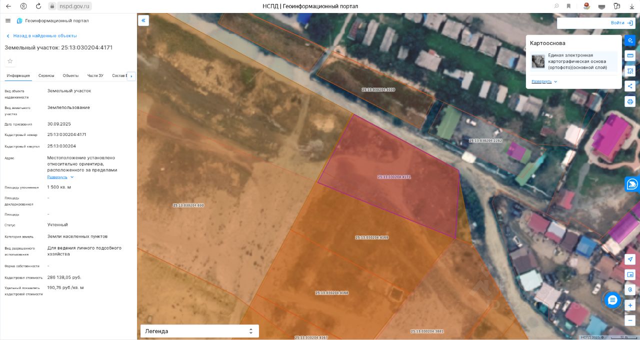 Земельный участок общей площадью 1500 кв.м., кадастровый номер 25:13:030204:4171.Местоположение: установлено относительно ориентира, расположенного за пределами участка. Ориентир здание. Участок находится примерно в 145 метрах по направлению на юг от ориентира. Почтовый адрес ориентира: Российская Федерация, Приморский край, Партизанский муниципальный округ, пос. Волчанец, ул. Шоссейная, д.1а. Категория земель: земли населенных пунктов. Вид разрешенного использования: для ведения личного подсобного хозяйства.Земельный участок расположен в зоне с особыми условиями использования территории: - реестровый номер границы: 25:00-6.323 часть водоохранной зоны Японского моря.