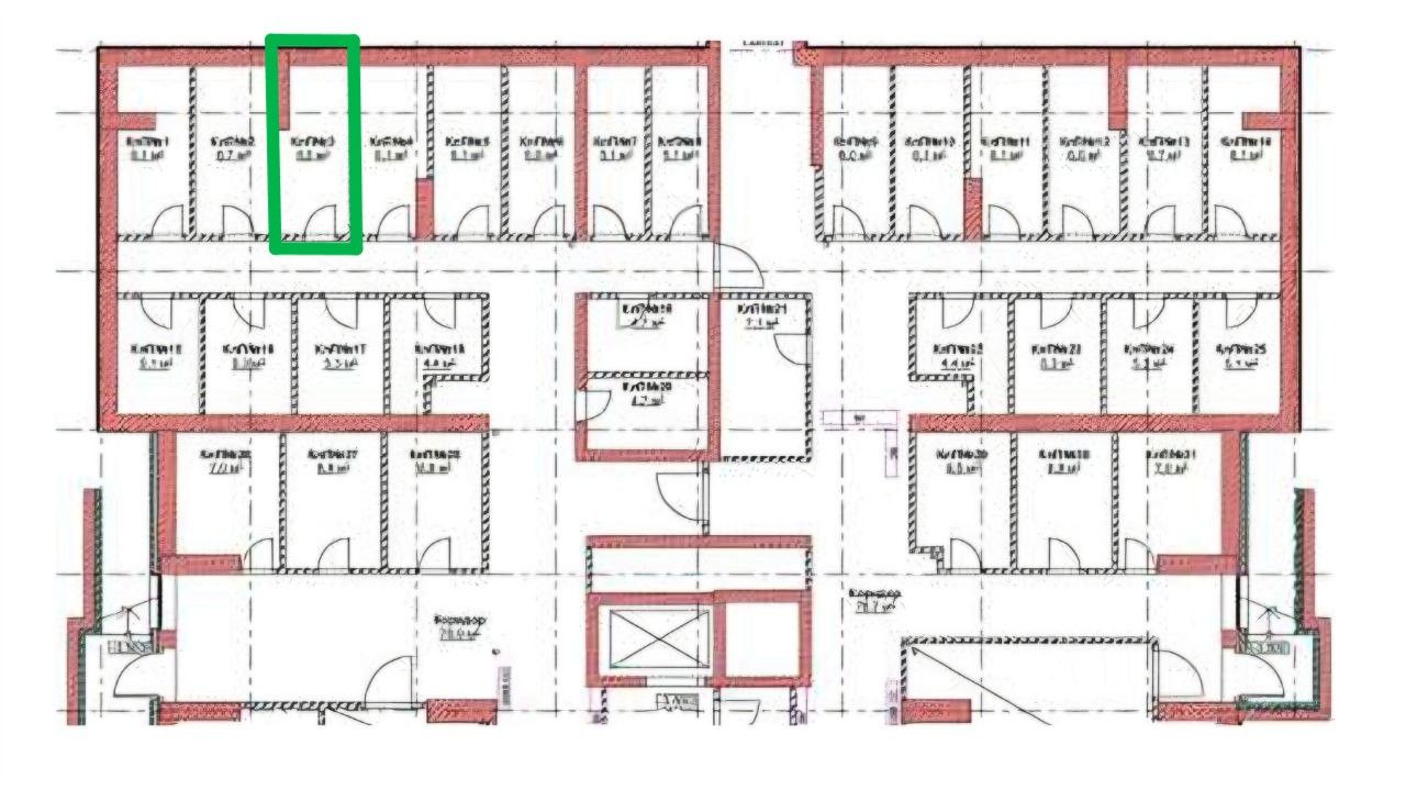 Помещение размером 6 км2, сухое, с высокими потолками, железная дверь.
