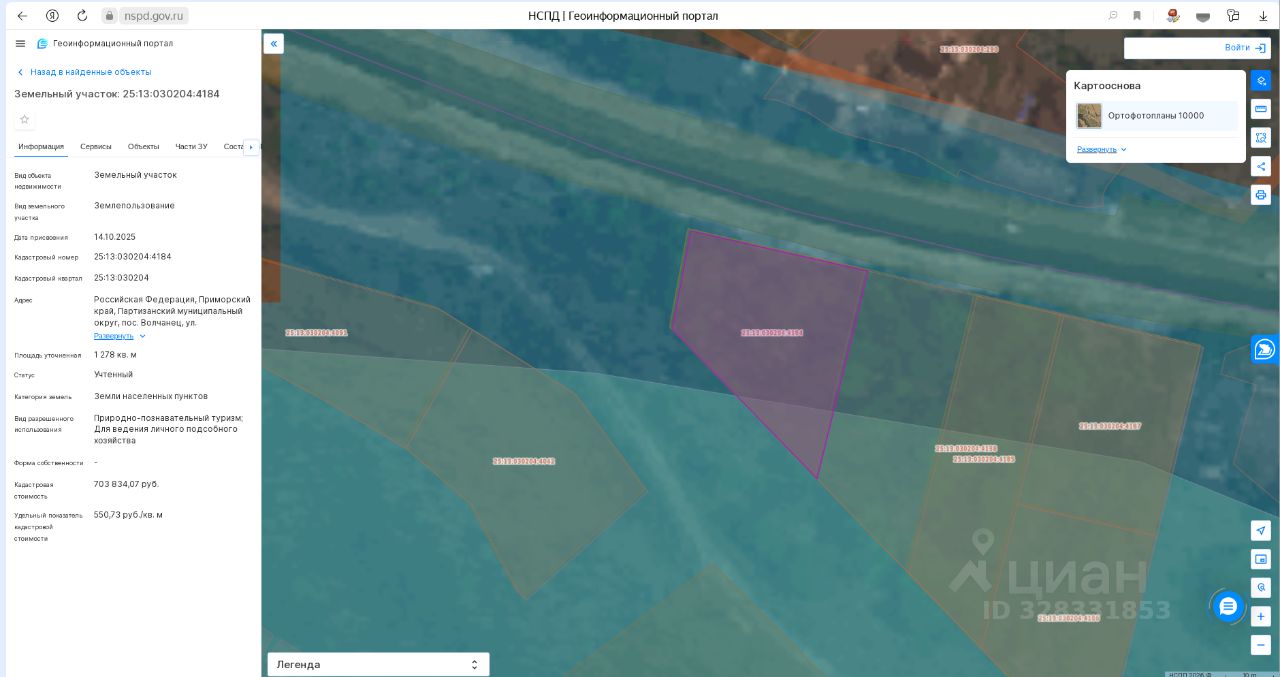 Лот 1-земельный участок общей площадью 1278 кв.м., кадастровый номер 25:13:030204:4184. Местоположение: установлено относительно ориентира, расположенного за пределами участка. Ориентир дом. Участок находится примерно в 290 метрах от ориентира по направлению на восток. Почтовый адрес ориентира: Российская Федерация, Приморский край, Партизанский муниципальный округ, пос. Волчанец, ул. Набережная, д.9. Категория земель: земли населенных пунктов. Вид разрешенного использования: природно-познавательный туризм; для ведения личного подсобного хозяйства. Цель предоставления: для ведения личного подсобного хозяйства.В отношении земельного участка установлены следующие ограничения и обременения: - реестровый номер границы: 25:00-6.323 часть водоохранной зоны Японского моря.- Информация о границах зоны планируемого размещения объекта капитального строительства в соответствии с утвержденным проектом планировки территории: линия электропередачи 110 кВ Находка-Волчанец-С55.