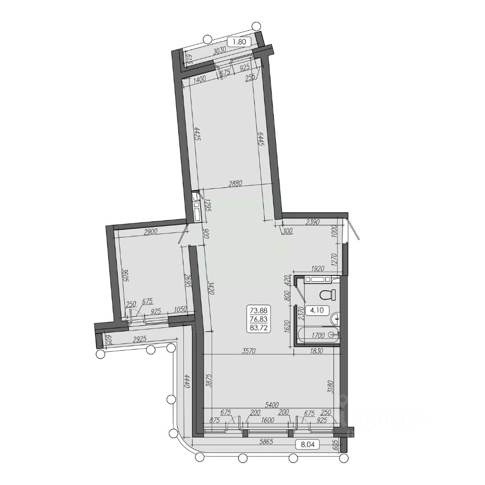 76,83 м²