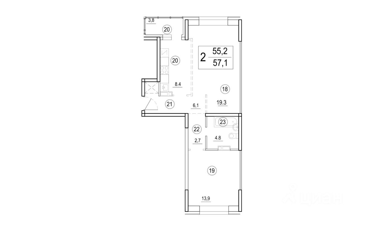 Продаётся 2-комнатная квартира в сданном доме (Дом 27А), срок сдачи: IV-кв. 2022, общей площадью 57.1 кв.м., на 5 этаже. Новый жилой дом от застройщика "Навигатор" расположен по адресу Владивостокский городской округ, посёлок Трудовое, улица Лермонтова.