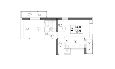 Продаётся 2-комнатная квартира в сданном доме (Дом 27А), срок сдачи: IV-кв. 2022, общей площадью 58.9 кв.м., на 8 этаже. Новый жилой дом от застройщика "Навигатор" расположен по адресу Владивостокский городской округ, посёлок Трудовое, улица Лермонтова.