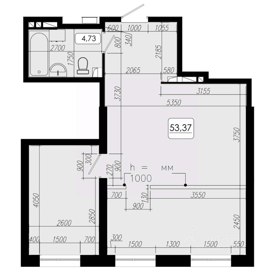 Общая площадь53,37 м²