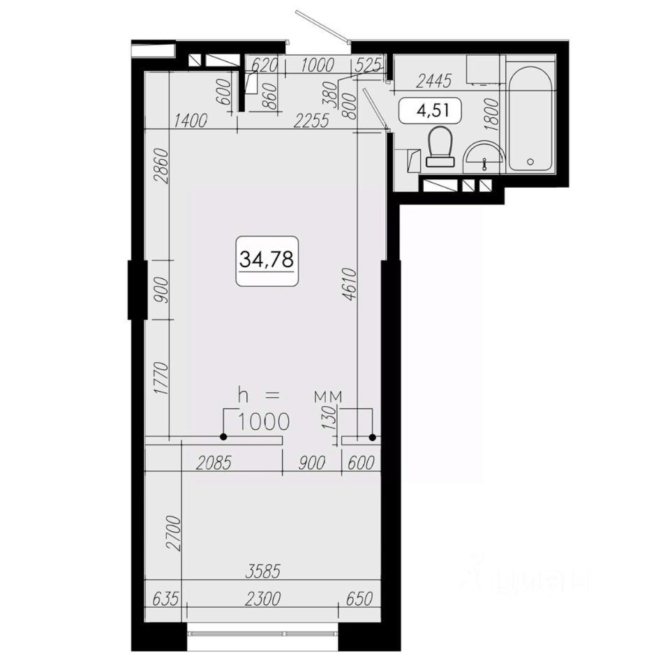Общая площадь34,78 м²