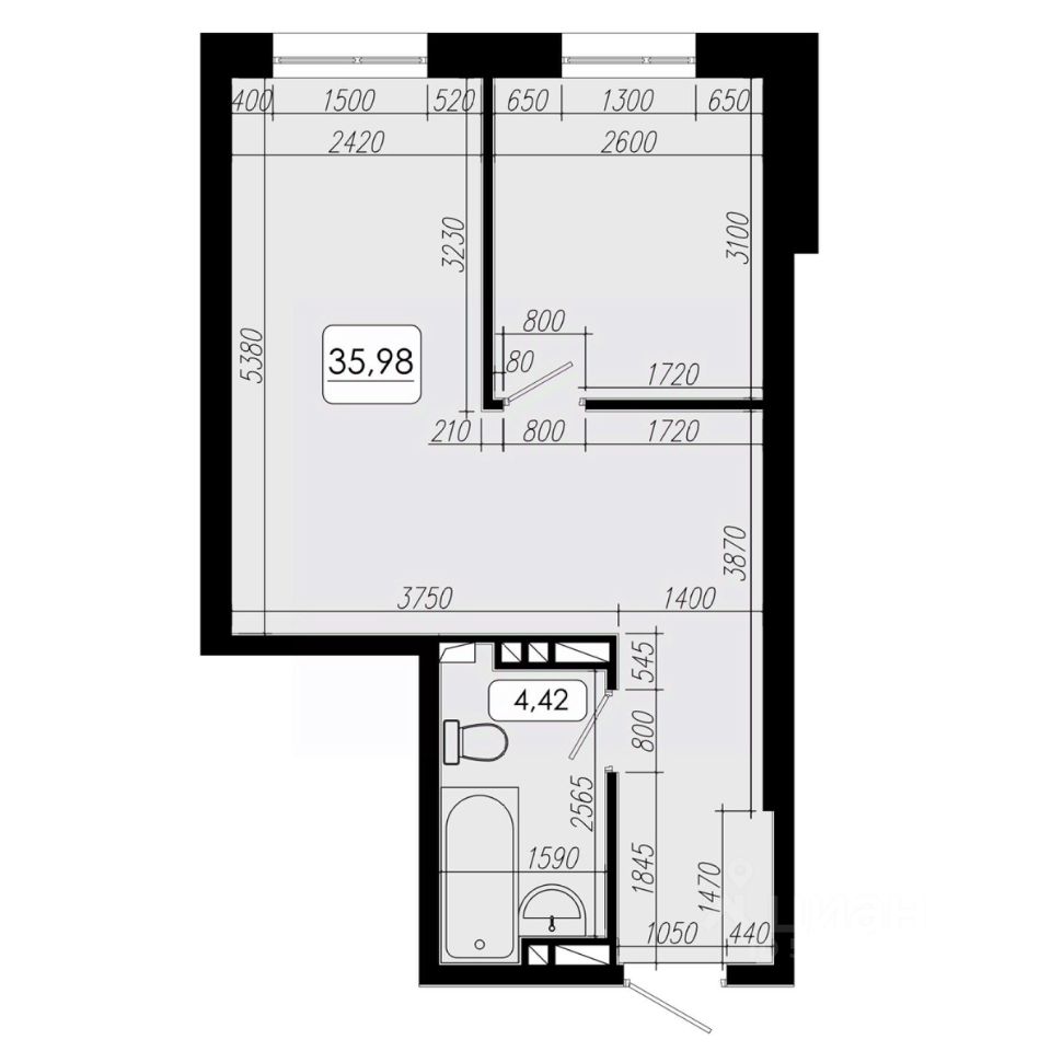 Общая площадь35,98 м²