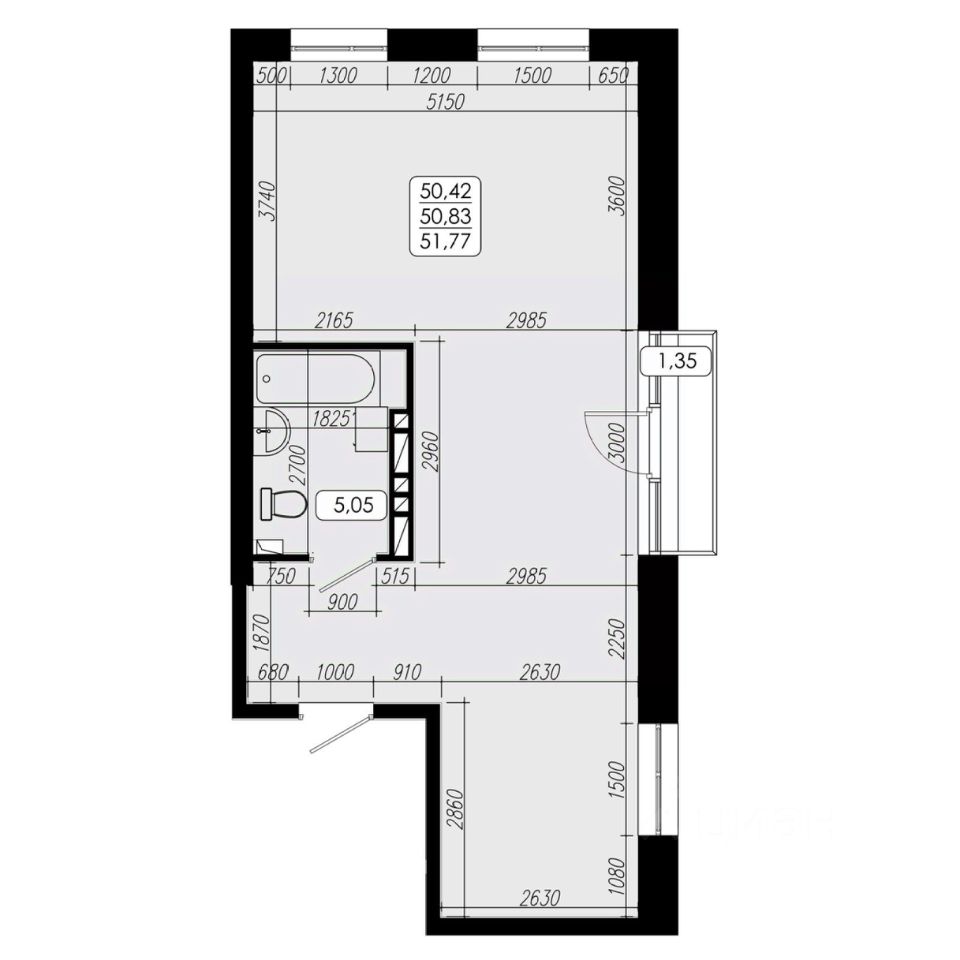 Общая площадь50,83 м²