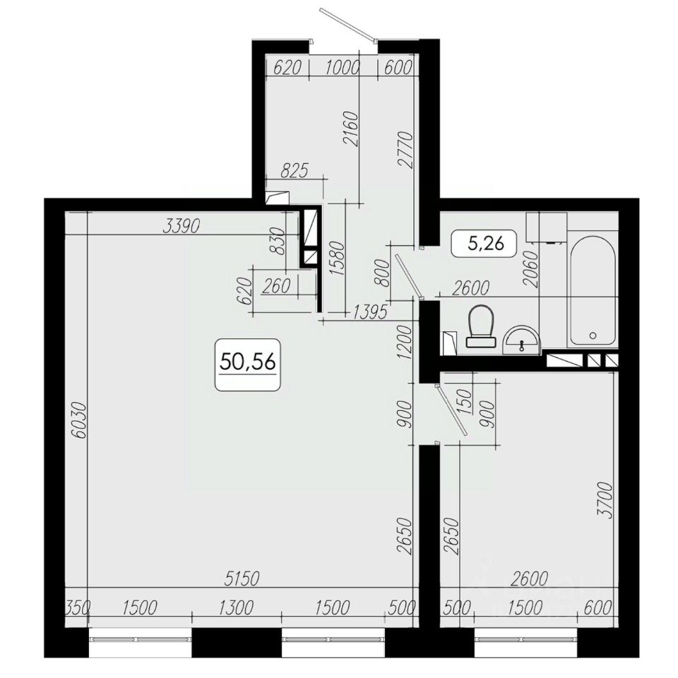 Общая площадь50,56 м²