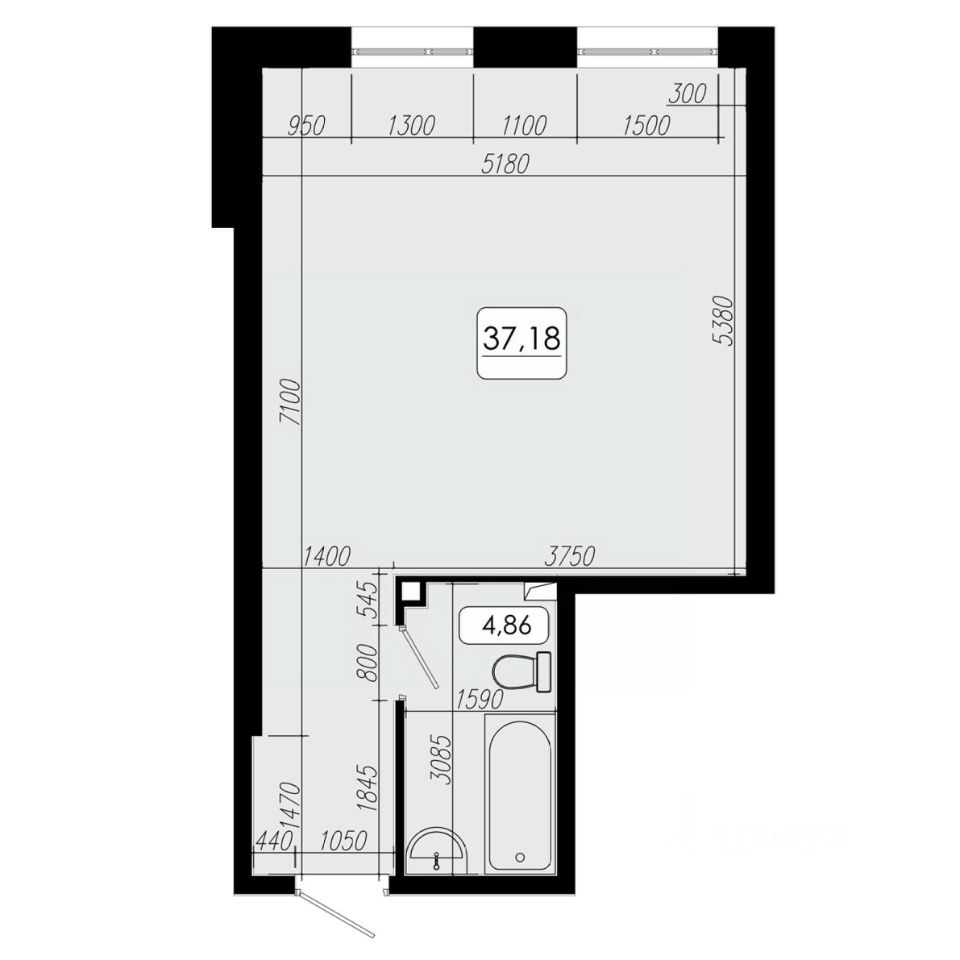Общая площадь37,18 м²