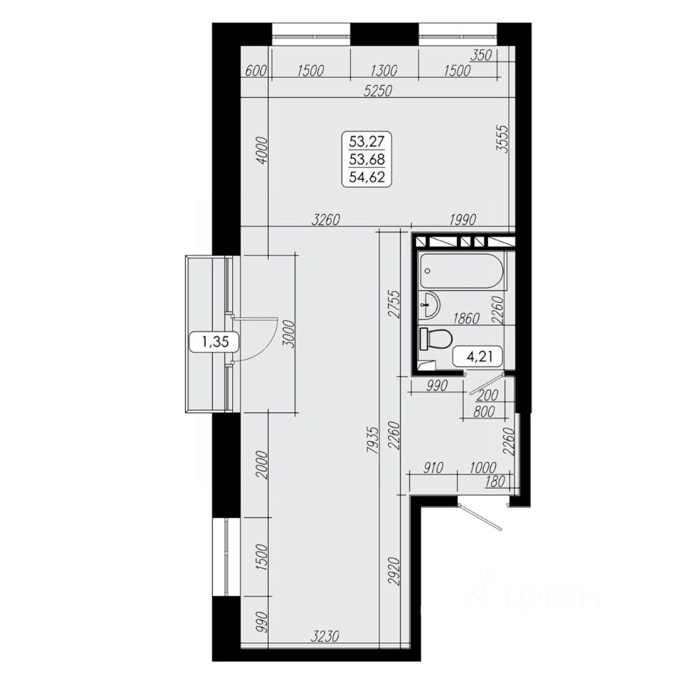 Общая площадь53,68 м²